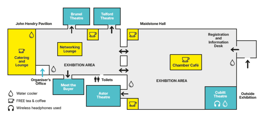 The exhibition and conference take place in the Maidstone Hall and John Hendry Pavilion.